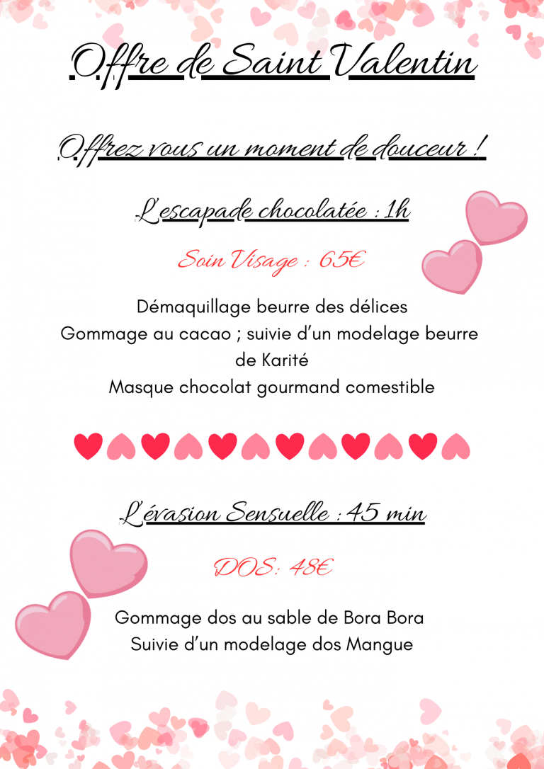 Elle dispose de 3 cabines : soins visage, corps, épilation, solarium, espace esthétique ainsi qu'un espace manucure.Venez passer un moment unique avec les modelages corps et dos. Laissez-vous tenter !